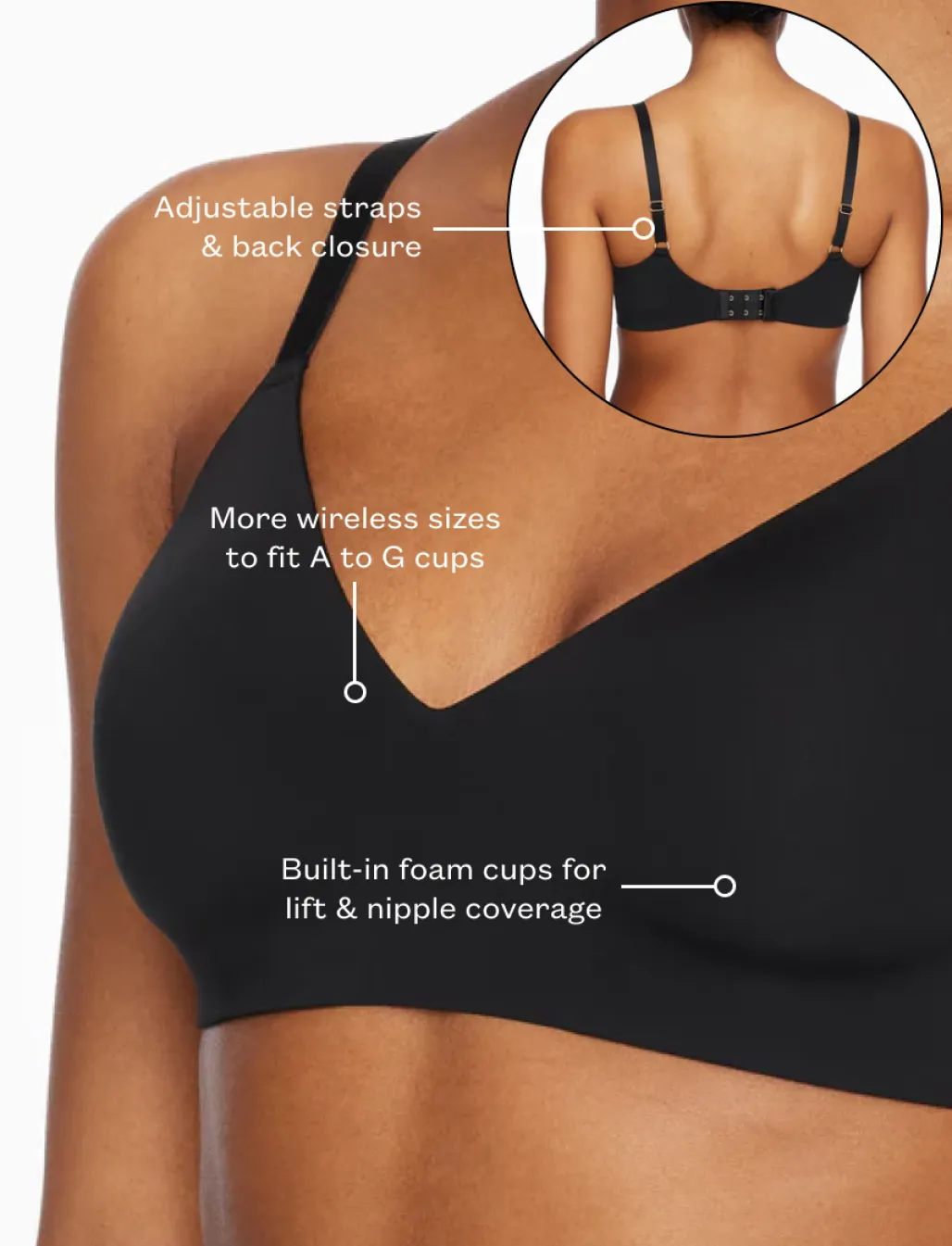 This wireless T-shirt bra checks all the boxes: great shape & lift, smooth under clothes, so comfy you might forget you’re wearing it. Made with Precise Sizing™ to fit everyone from A to G.