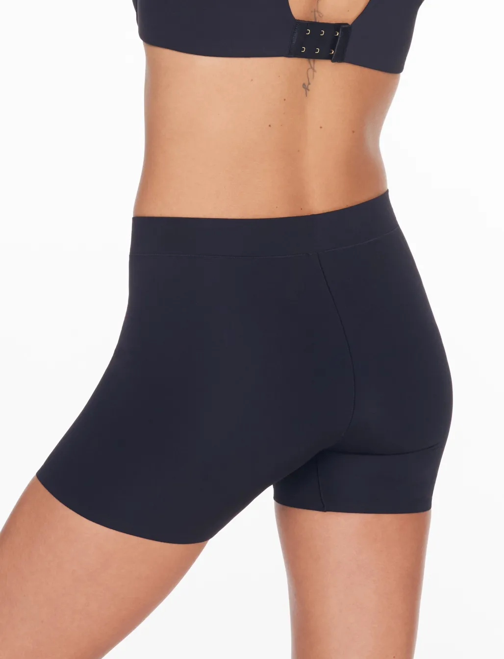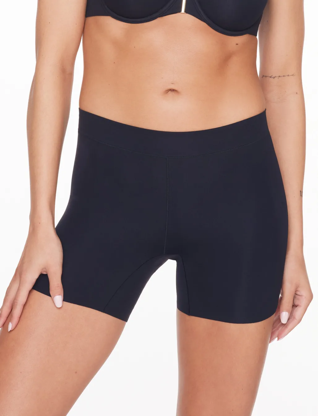 The under-everything short. A multitasker: thigh saver under dresses, bike short for skirts, sleep boxer brief… Lightweight smoothing stretch fabric covers without chafing or creeping.