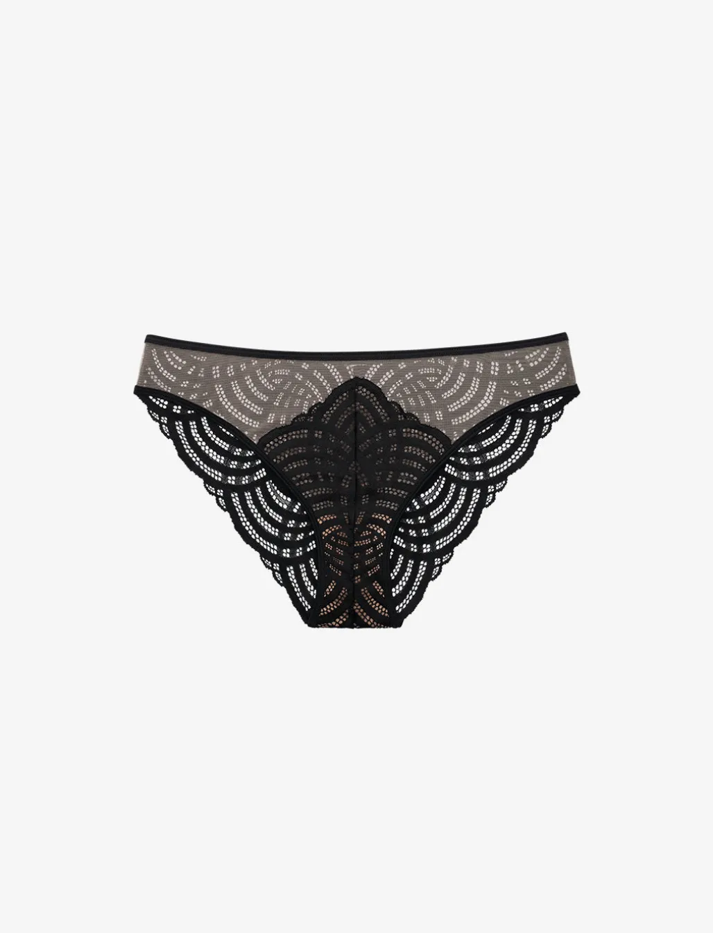 Classic 1920s style reimagined. The secret to the Deco Lace Bikini’s PG-meets-provocateur style: barely-there mesh paired with placed modern, textured lace. A perfect balance of embroidered aesthetic and everyday wearability..
